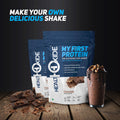 Add 1 scoop (approx. 33g) of My First Protein to 200–250 ml of water or milk.