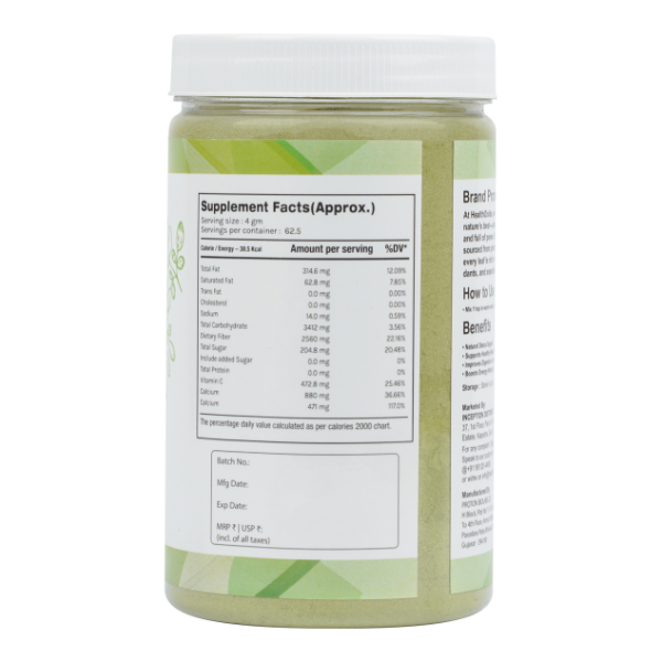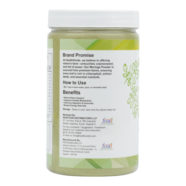 Organic Moringa Powder: 1 teaspoon daily in warm water, smoothie, or salad.