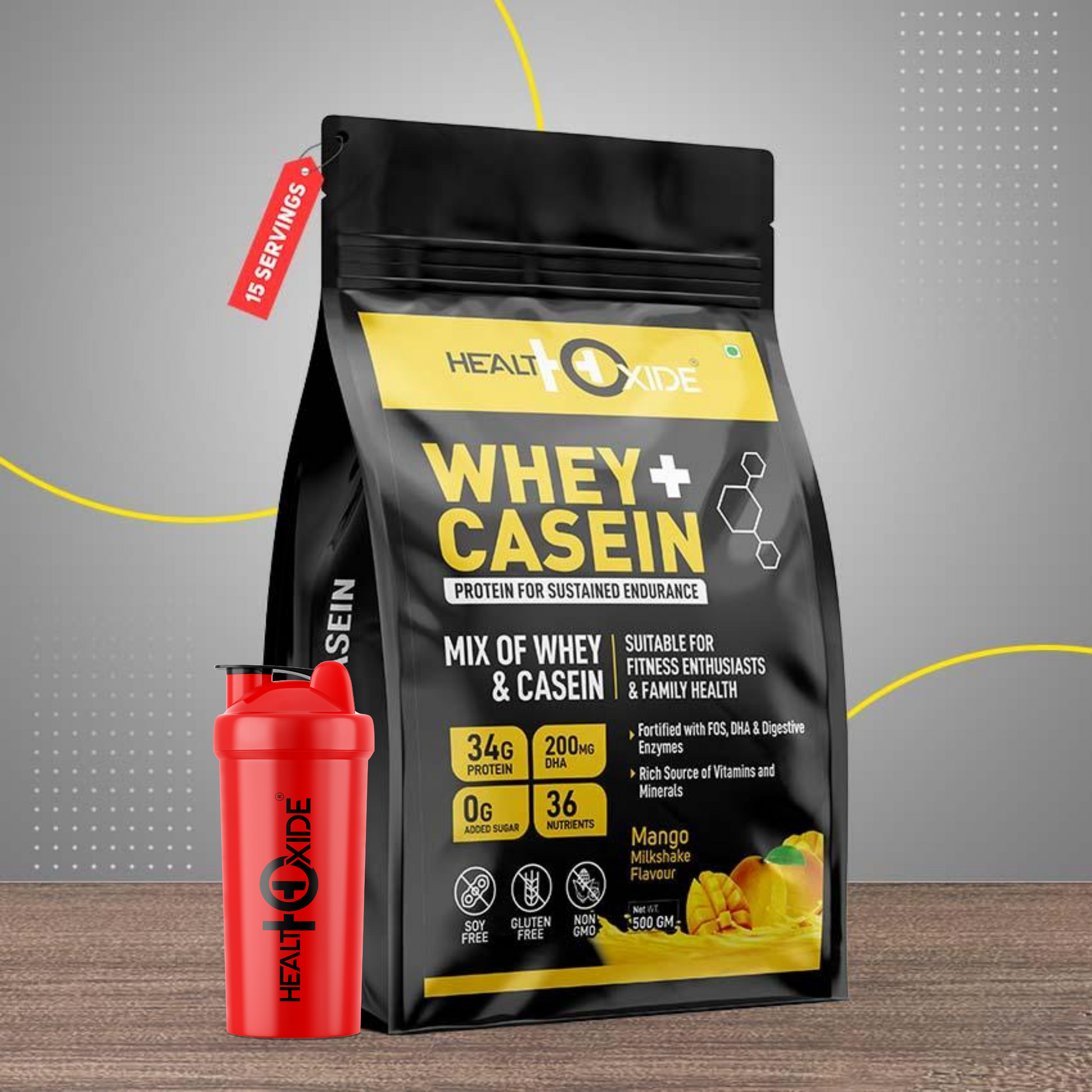 Healthoxide Whey + Casein Mango Flavor Protein Milkshake With Free Shaker